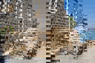Uvečer pak lađa bijaše posred mora, a on sam na kraju. Vidjevši kako se muče veslajući, jer im bijaše protivan vjetar, oko četvrte noćne straže dođe k njima hodeći po moru. I htjede ih mimoići. A oni, vidjevši kako hodi po moru, pomisliše da je utvara pa kriknuše. Jer svi su ga vidjeli i prestrašili se. A on im odmah progovori: »Hrabro samo! Ja sam! Ne bojte se!« I uziđe k njima u lađu, a vjetar utihnu. I veoma se, prekomjerno, snebivahu; još ne shvatiše ono o kruhovima, nego im srce bijaše stvrdnuto.